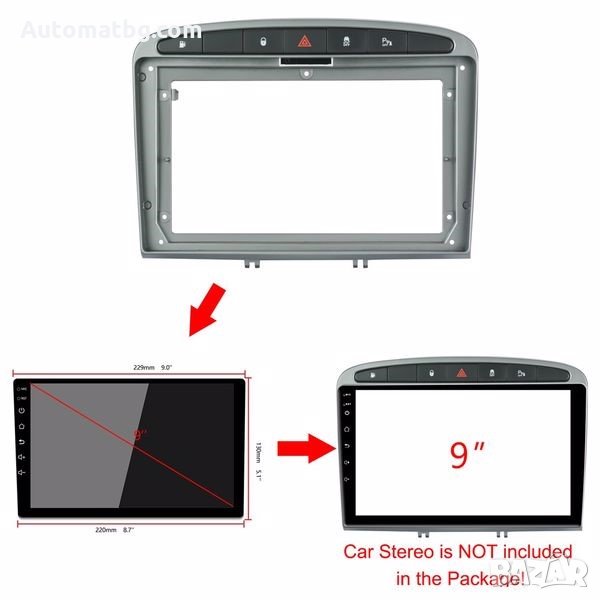 Адапторна рамка Automat, За PEUGEOT 308, 408, 9INCH, Сив.