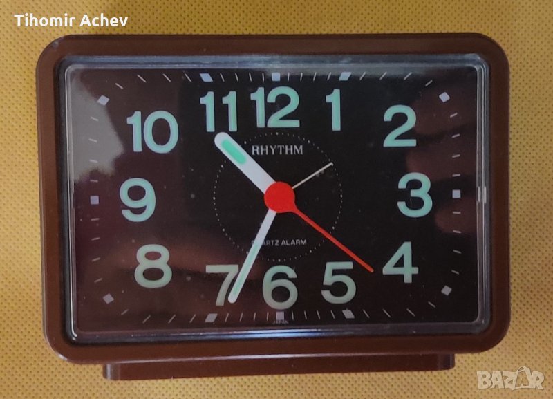 Оригинален японски будилник RHYTHM с камбанка. С фосфоресциращи цифри и стрелки.
