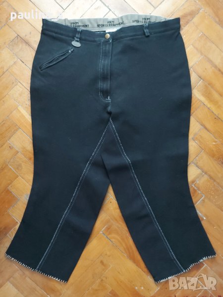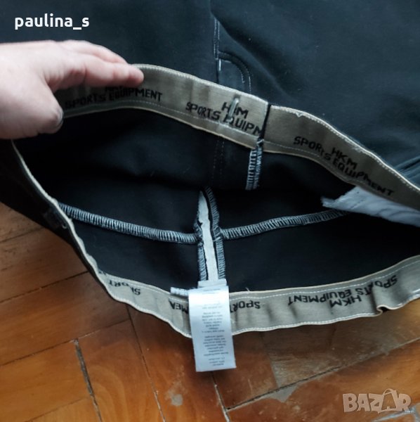 1️⃣ . L / 2XL - "HKM" sports equipment. Цената е крайна 34,99лв. Много плътни бермуди за езда / панталон от еластична материя с бели декориращи конци с оформящ и стягащ ефект. Подходящи са хладно време с боти или ботуши, поради еластичността, може да се носи от няколко размера. Моделът е на клин или ездачески брич, имам го и в друг цвят в друга обява. Този го скъсих за себе си и декорациите долу са от мен, не съм го носила. Материите са два вида, между краката е много плътна - за езда и затова изглежда така дрехата не облечена. В страни, материята е много еластична и здрава и има прибиращ ефект. Изработката е перфектна, дрехата също.