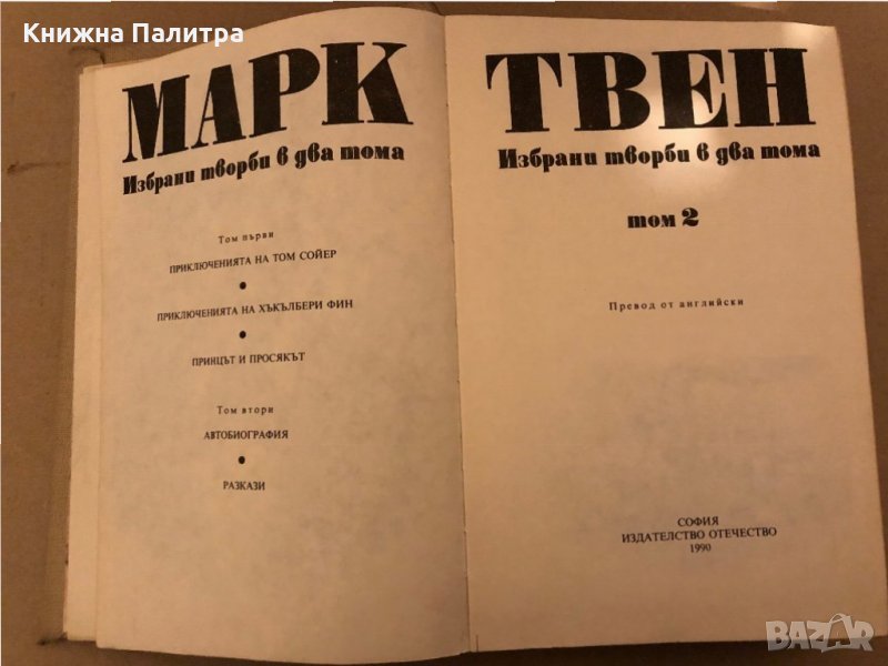 Избрани творби в два тома. Том 1 -Том 2 Марк Твен → Обява 35939517