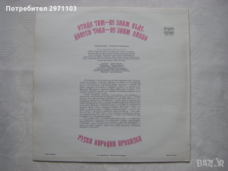 Грамофонна плоча - ВАА 12310 - Отиди там - не знам къде, донеси това - не знам какво: руска народна приказка