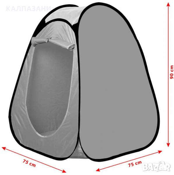 Готова за използване само за 3 секунди, палатката, когато е отворена, е с размери 75 x 75 x 90 см.