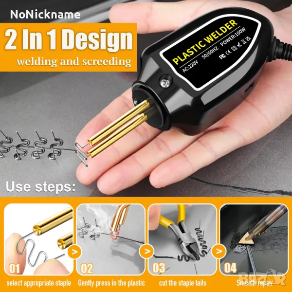 100W Поялник пистолет за лепене на пластмаса + 1200бр. скоби / Plastic Welding Gun Welder