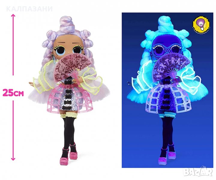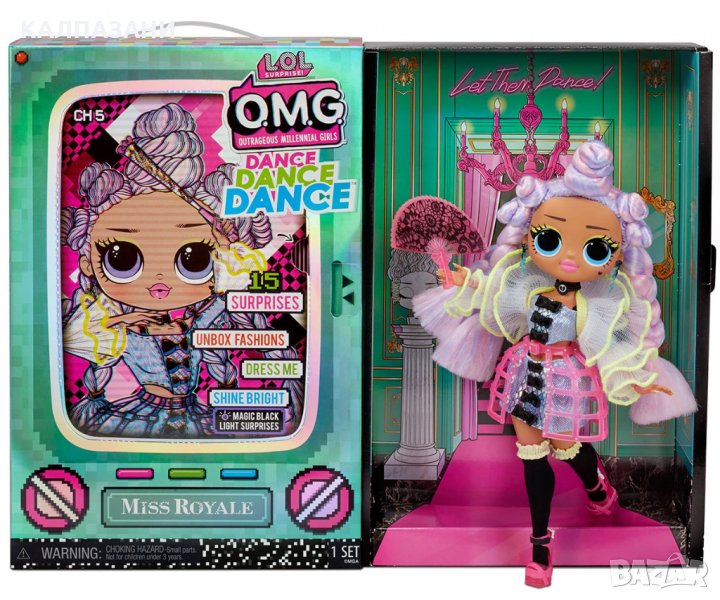 Представяме ви най-новите членове на семейството на LOL! Тези кукли са готови да се справят с най-добрата танцова концепция. Разкрийте танцовите движения, модата и толкова много изненади с LOL Surprise Dance Dance Dance. Научете оригиналните танцови движения на всяка кукла, след това ремиксирайте, за да създадете свои собствени танци. И всички те включват вълшебни светлини, за да разкрият изненади на дансинга. Сега, когато имаме най-добрата музика на LOL Surprise, се нуждаем от най-добрите танцови движения. По време на поредицата феновете ще могат да събират и да учат танцови движения, след което да ги ремиксират в свои собствени танци, за да могат да танцуват с приятелите си. Опаковката се използва многократно като стая за игра. Осветете куклата с фенерчето и открийте светещи изненади. Включва: 1 LOL Surprise OMG модна кукла, мода, обувки, аксесоари, кутия за шапки, черна светлина, четка за коса, чанта за дрехи, стикер, закачалка, стойка за кукли и комплект за многократна употреба в изцяло ново изживяване за разопаковане.