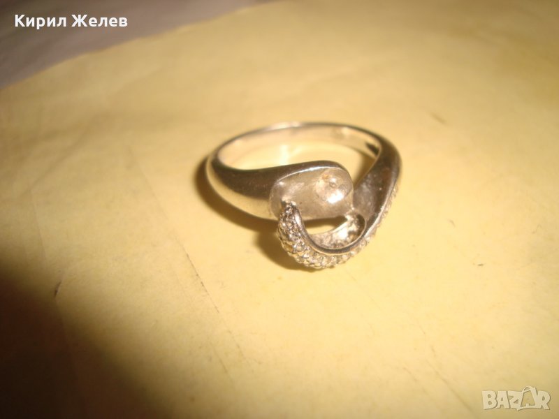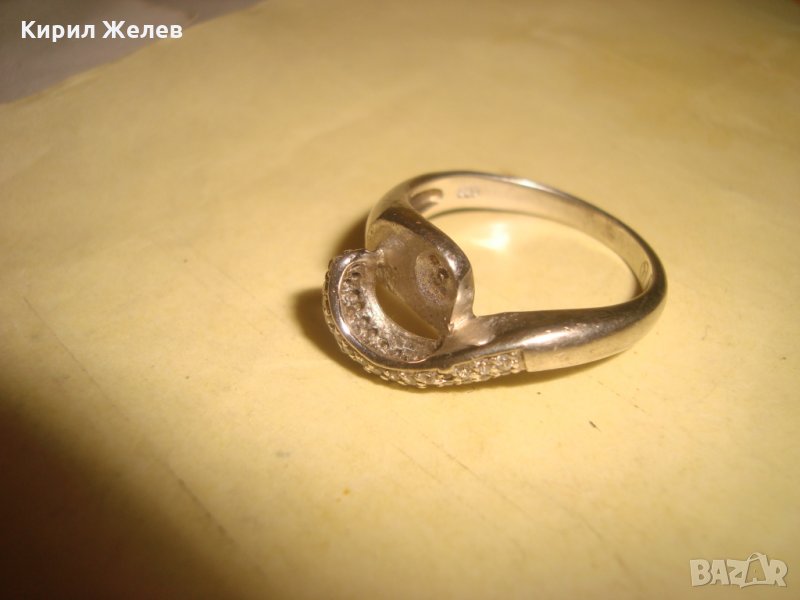 СТАР СРЕБЪРЕН АРТ ДЕКО ПРЪСТЕН РОДИРАНО СРЕБРО 925 с ЦИРКОНИ и ГНЕЗДО за ВГРАЖДАНЕ на ПЕРЛА 26048
