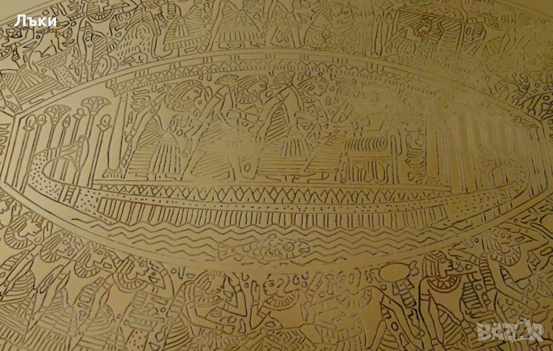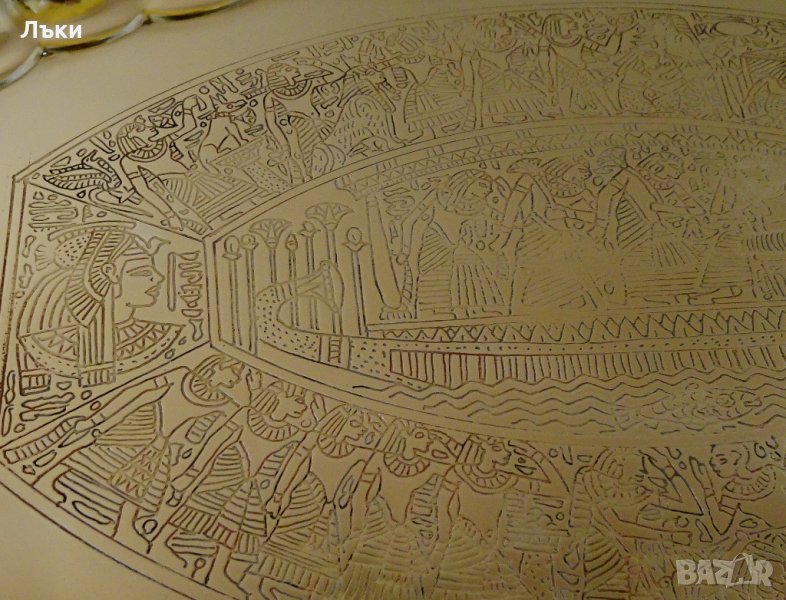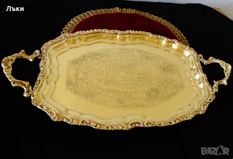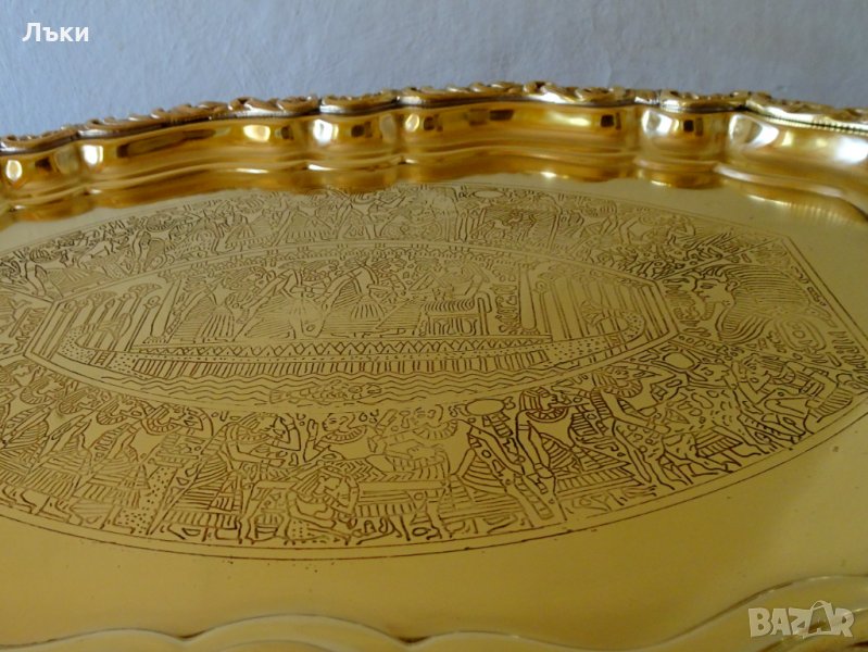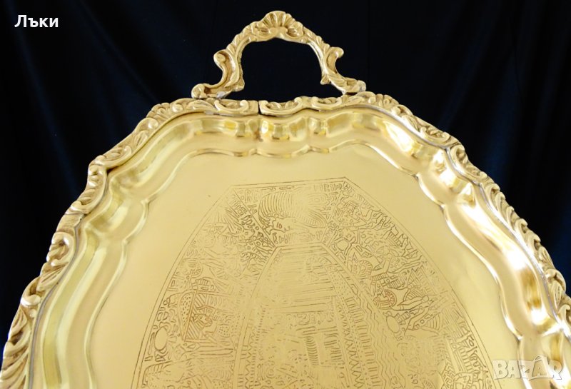 изработка от масивен златен бронз.В центъра на подноса има релефно гравирана