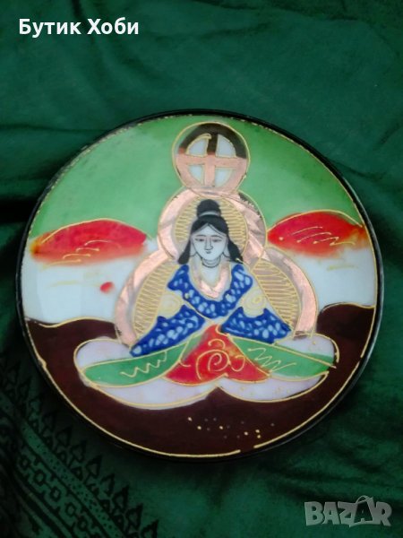 5 чинийки, 2 чашки, захарничка и латиера. Диаметър на чашката - 5,5см; височина - 5,5см.Диаметър на чинийката - 11см; височина на другите предмети - 7см.