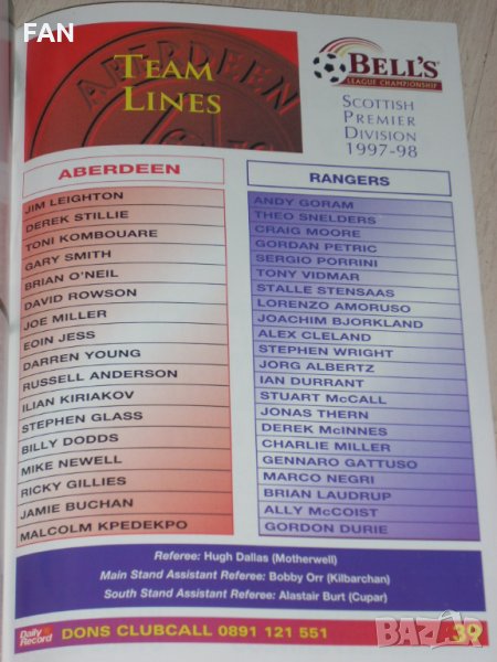 Абърдийн оригинални шотландски футболни програми 1996-1998 с Илиян Киряков и Цанко Цветанов Глазгоу → Обява 35952557