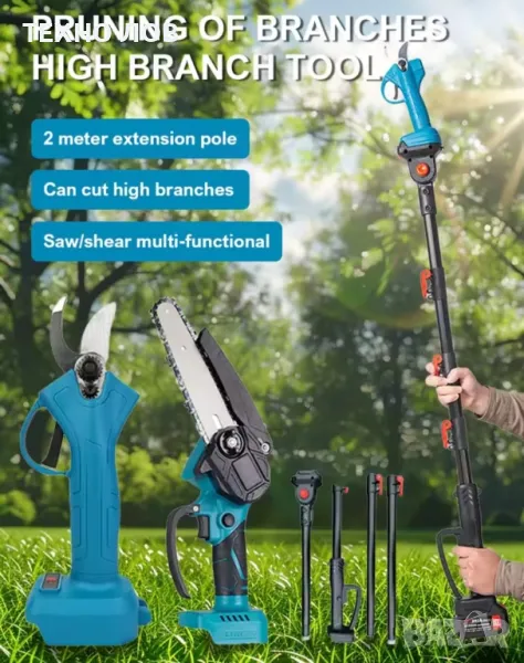 подходящ за рязане на дърво, подрязване на клони на дървета, градинарство и други строителни монтажи.