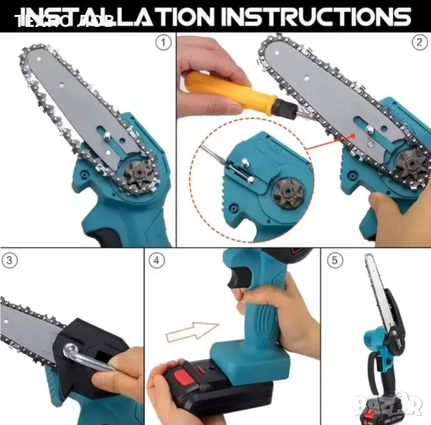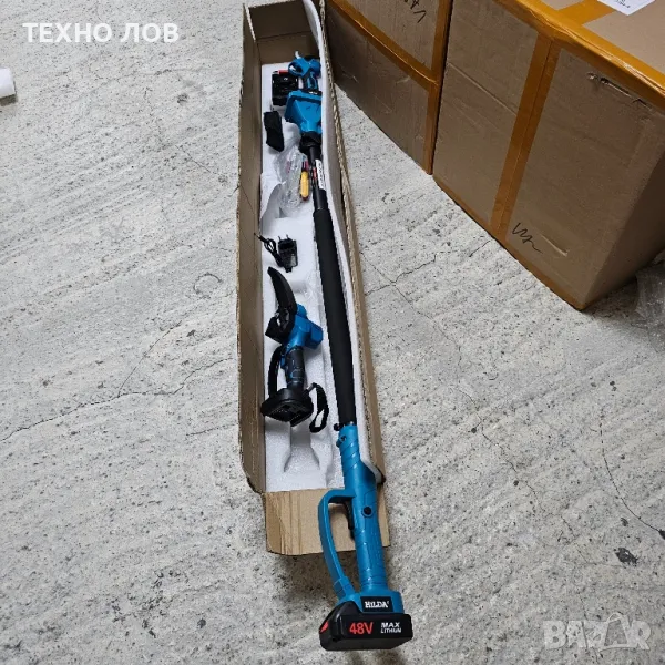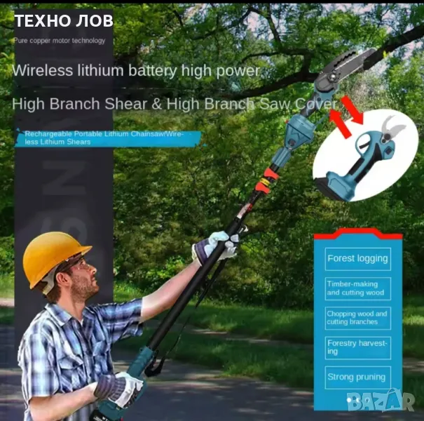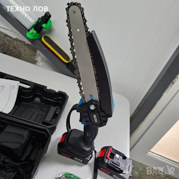 Акумулаторна резачка за дърва и клони с 2 литиевойонни батерии-48v с и 2 вериги