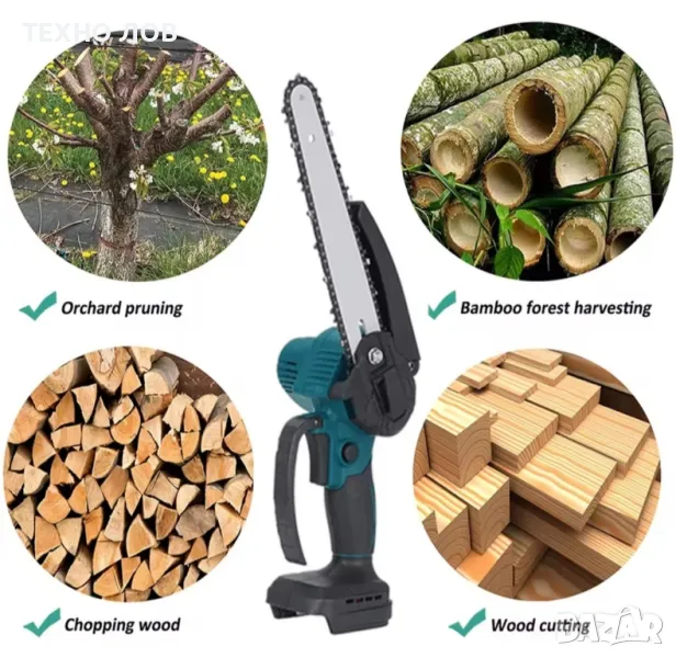 Акумулаторен електрически верижен трион, лек и преносим, дълъг живот на батерията.
