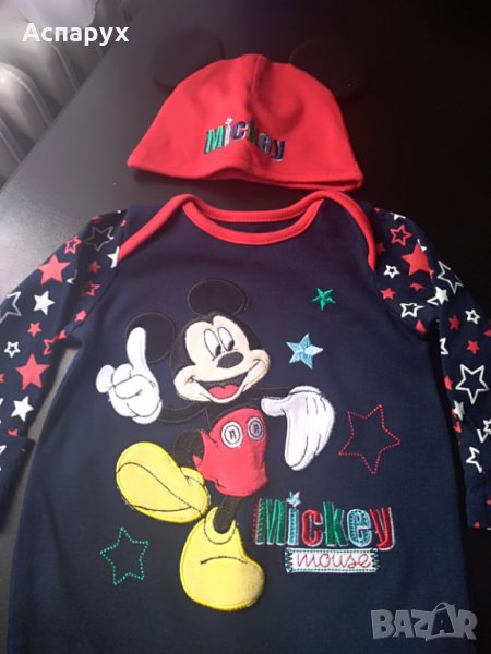 Комплект бебешка дреха ромпър с шапка с ушички Мики Маус → Обява 35954982