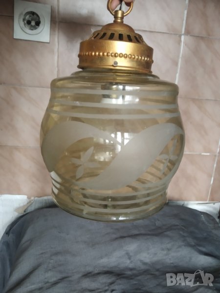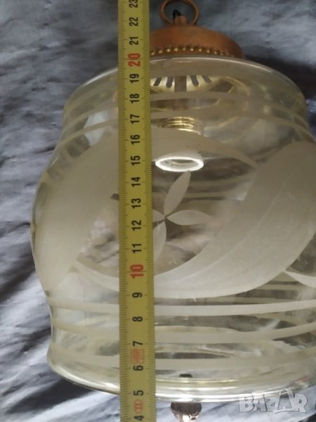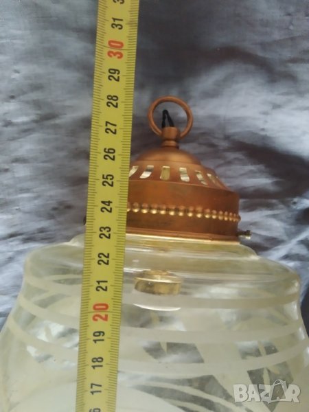стар полилей арт деко,стъкло с метален обков,месингова фасунга.размери и състояние видни на снимките,