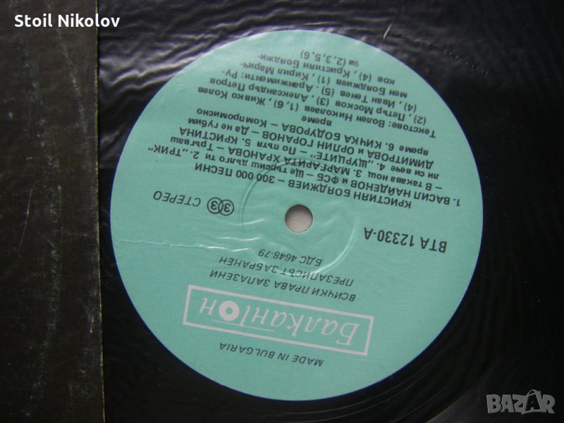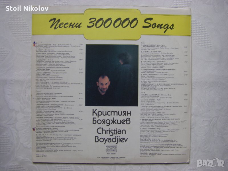 Грамофонна плоча - ВТА 12330 - Кристиян Бояджиев. 300 000 песни