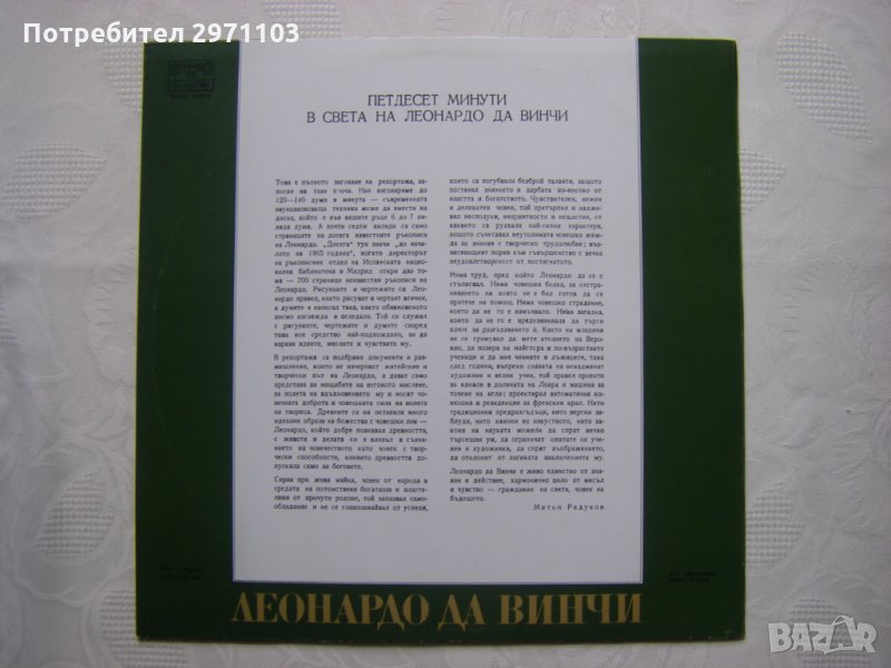Грамофонна плоча - ВАА 10474 - 50 минути в света на Леонардо да Винчи - Митьо Радуков