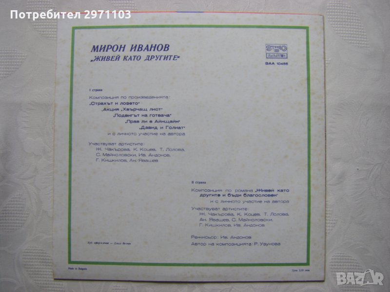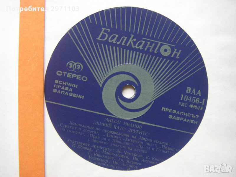 Грамофонна плоча - ВАА 10456 - Мирон Иванов. Живей като другите