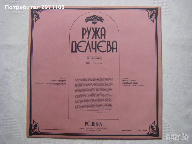 Грамофонна плоча - ВАА 12218 - Ружа Делчева. Рецитал