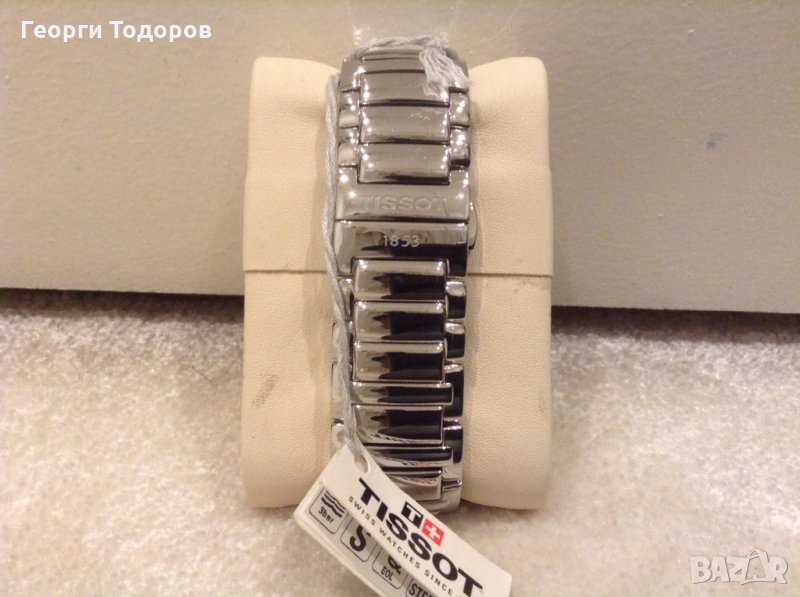 Елегантен дамски часовник TISSOT със сапфирено стъкло, изработен от благородна стомана с трансперантна закопчалка, секундарник, EOL (End of Life) индикатор - сигнализира преди батерията да бъде изтощена като секундарната стрелка започва да прескача през 4 секудни.
