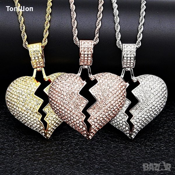 Разбито сърце с висулка обградено с кристали камъни тип цирконий с верижка !