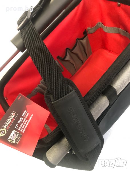 Висококачествена чанта за инструменти CK Magma, внос от Германия. С многофункционално приложение, гумено дъно, материал - здрав полиестер. С възможност за носене в ръка и на рамо, в отворено и затворено положение, външни и вътрешни джобове. Водоустойчива, с размери: 29.01 x 49 x 43.99 см; 2.2 кг. Посочените инструменти към чантата на снимките са примерни и не са включени в комплекта.