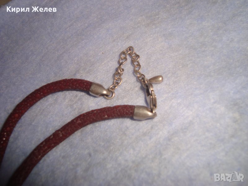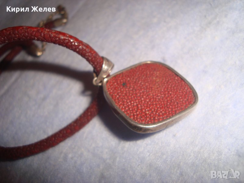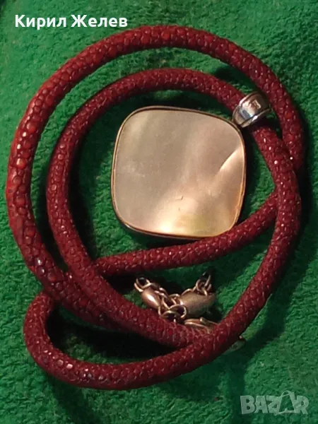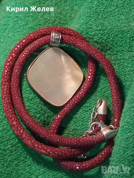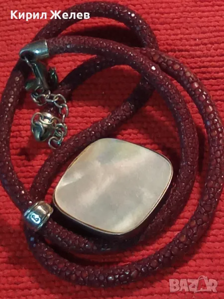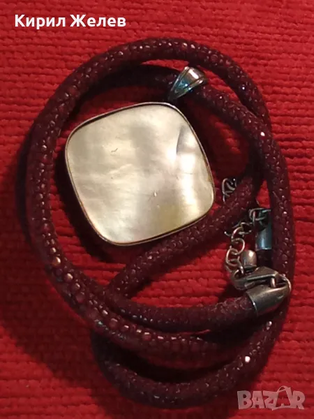СРЕБЪРНО СЕДЕФЕНО АРТ КОЛИЕ МЕДАЛЬОН с ШНУРЧЕ и ГРЪБ КОЖА от САЛАМАНДЪР СРЕБРО 925 със СЕДЕФ 16908