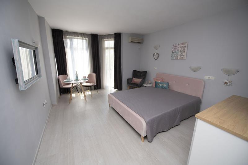 Удобства:Рецепция, басейн с детски сектор, бар при басейна, ресторант, супермаркет, аптека, банка, бизнес център.Цена с мебели 53900 евро