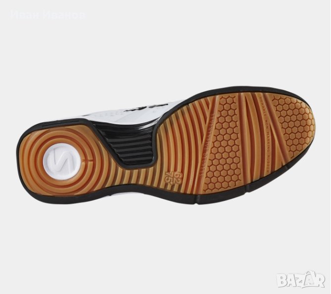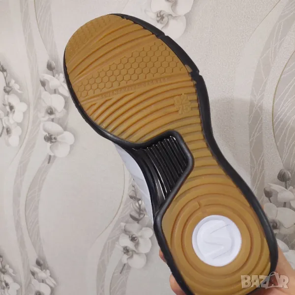 Гумата в подметката осигурява добро сцепление при бързи завои. Подметката не оставя следи.