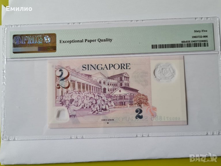 Продавам Сертифицирана Банкнота от Сингапур 2 Долара от 2015 год. С една Звезда на Гърба.