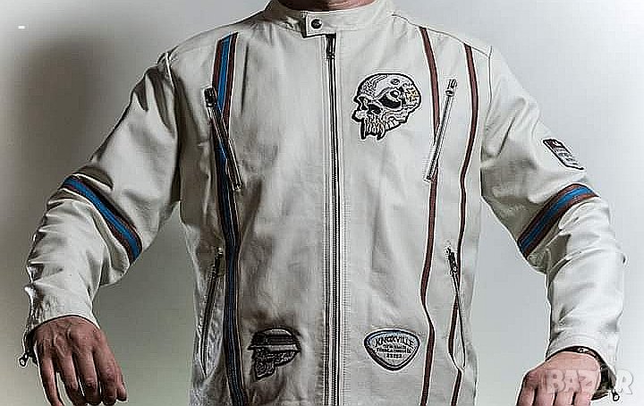Уникално кожено яке, естествена кожа с нашивки правено е по поръчка и е уникат