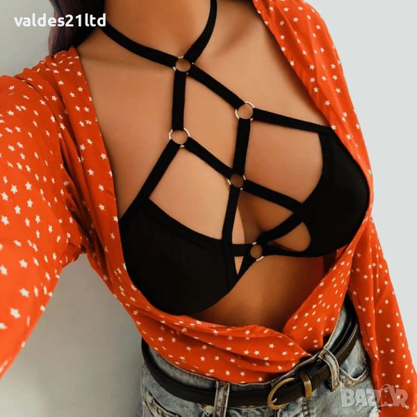 Може да направите пълен предизвикателен сет като комбинирате с чокър бикини или прашки, жартиерни колани, чорапи и секси дантелени ръкавициот другите ни обяви.