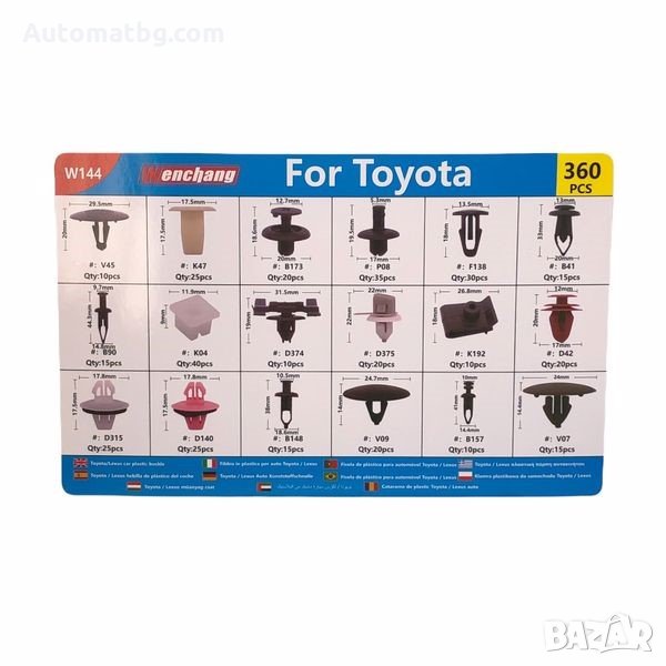 Щипки за интериор Automat, За Toyota, Кутия, 360бр.