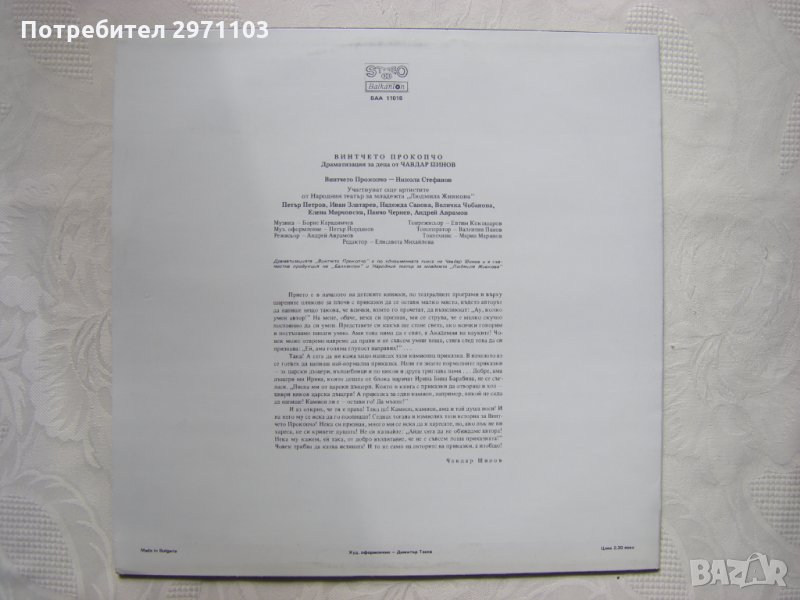 Грамофонна плоча - ВАА 11018 - Винтчето Прокопчо: драматизация (Чавдар Шинов)