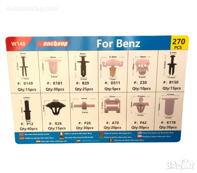 Щипки за интериор Automat, За MERCEDES, Кутия, 270 бр.