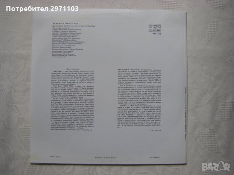Грамофонна плоча - ВАА 11465 - Чудото в Мишоград: драматизация по Една приказка за феи (Жул Верн)