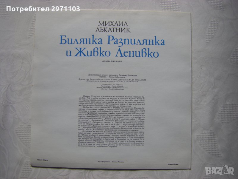 Грамофонна плоча - ВАА 12014 - Билянка Разпилянка и Живко Ленивко (Михаил Лъкатник)
