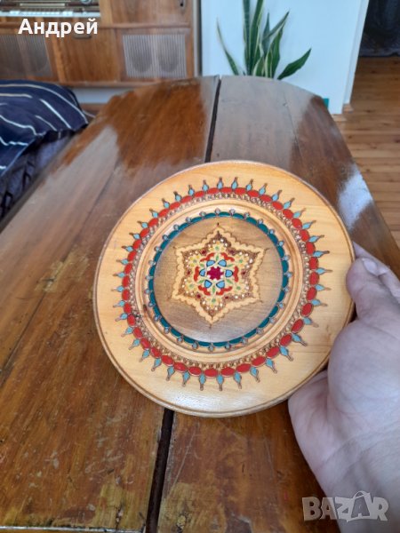дървена чиния,декорация от соца!