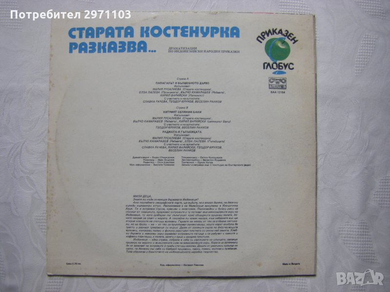 Драматизации по индонезийски народни приказки Борис Спиридонов; Режисьор Иван Андонов; муз. оформление Виолета Топалова; ред. Олга Кръстева