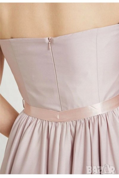 Нова официална рокля в цвят пепел от рози, асиметрична кройка по-къса отпред, дълга отзад, изключително богата долна част, с подплата, горната част е сатен , размерът е 42 Л/Хл
