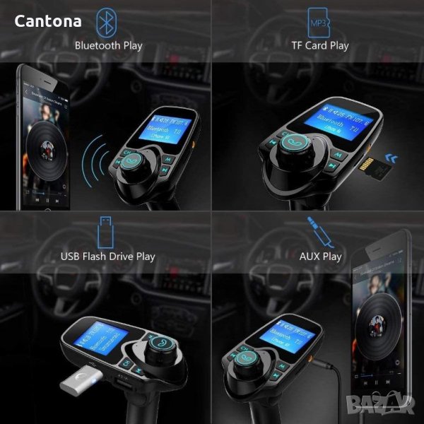 - Широка съвместимост: FM предавателят bluetooth за кола е съвместим с повечето устройства на пазара, като iPad, iPhone, iPod, HTC, Galaxy, Sony, MP3 плейър, таблет и смартфони с Android. Можете да пускате любимите си песни на стерео уредбата на колата чрез Bluetooth, TF карта и Aux кабел. И пасва на 12V-24V автомобили и камиони.