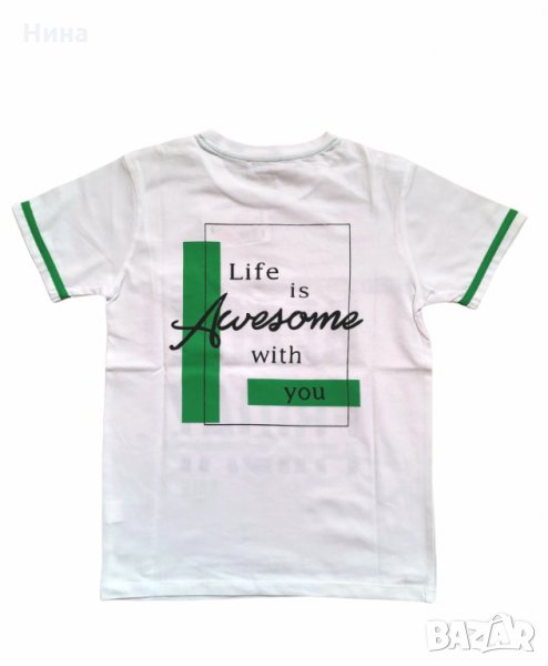 Тийн тениска в бяло с апликация и на гърба. Налични размери: 9/10 години, 10/11 години 11/12 години, 12/13 години и 13/14 години