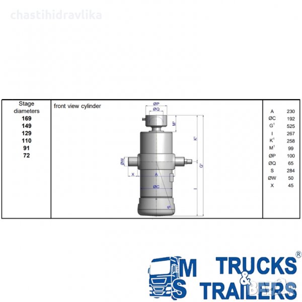 Хидравличен цилиндър HYVA UMB - 169-6-1780-K258-50-3/4”HC