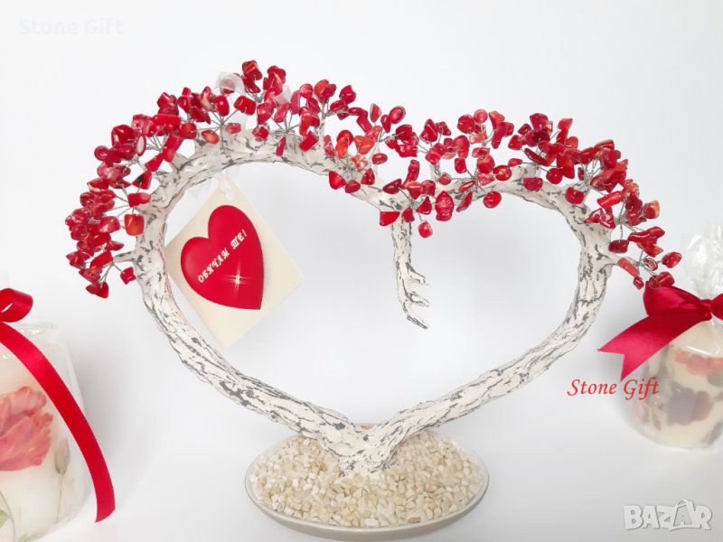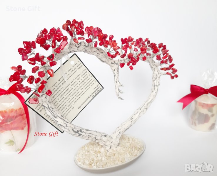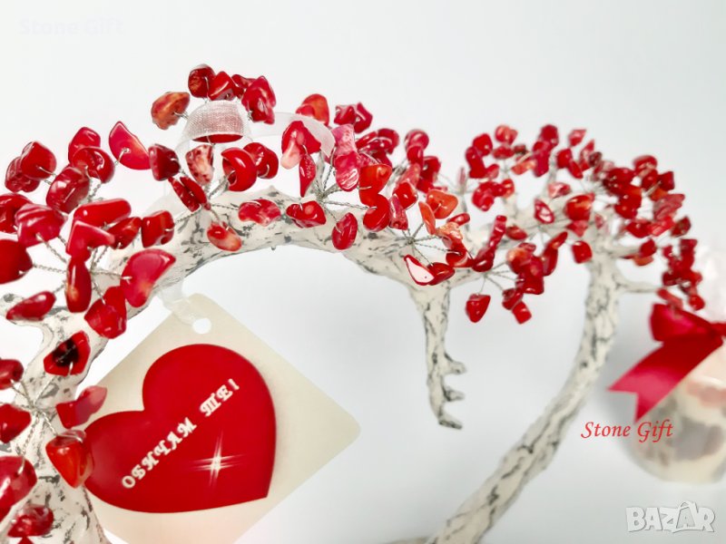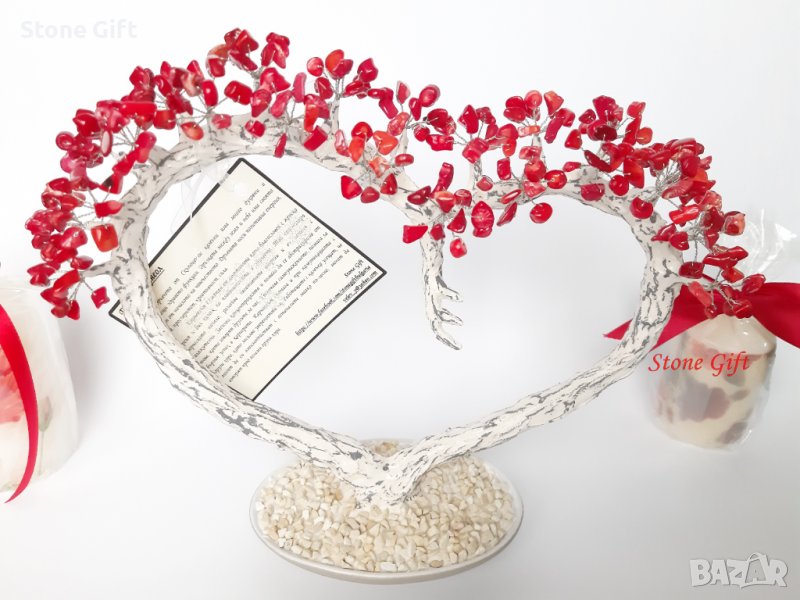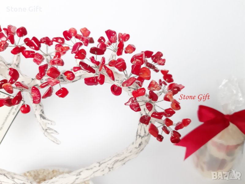 Дръвчето е красив Подарък, който може да е най-доброто решение за специален ден. Ръчно изработен от мен, само от естествени материали с позитивно въздействие за организма. За направата му съм използвала камъни от червен корал, медна тел и естествен гипс. Дръвчето е високо 23 см., 28 см. широко и 10 см. дълбоко.