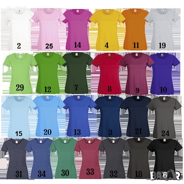 Тениската е 100%памук на Fruit Of The Loom. Има еквивалент както с V деколте.