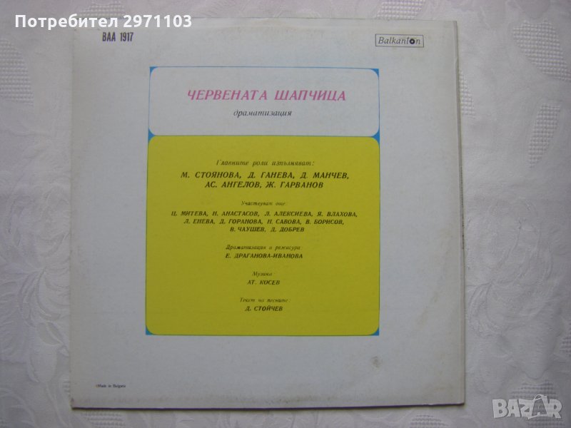 Грамофонна плоча - ВАА 1917 - Червената шапчица (драматизация и режисура Е. Драганова-Иванова)