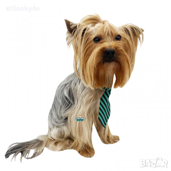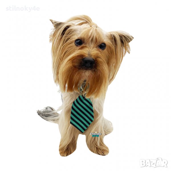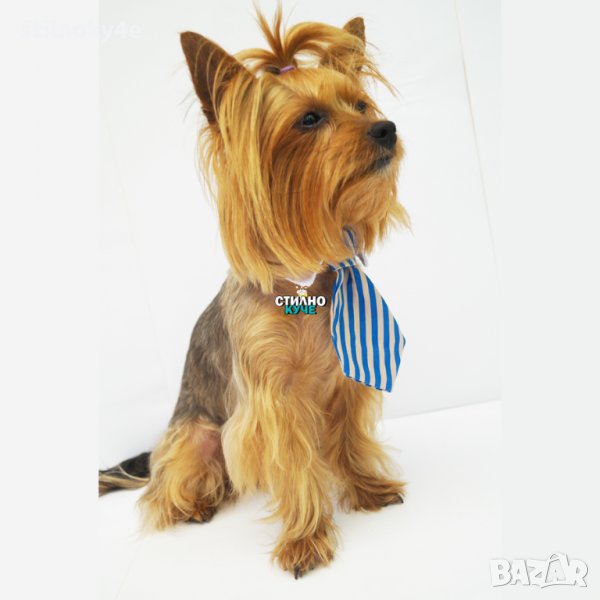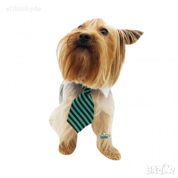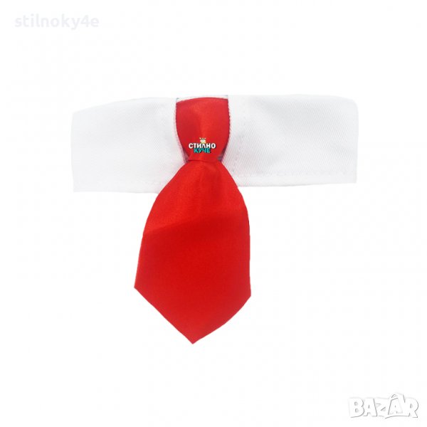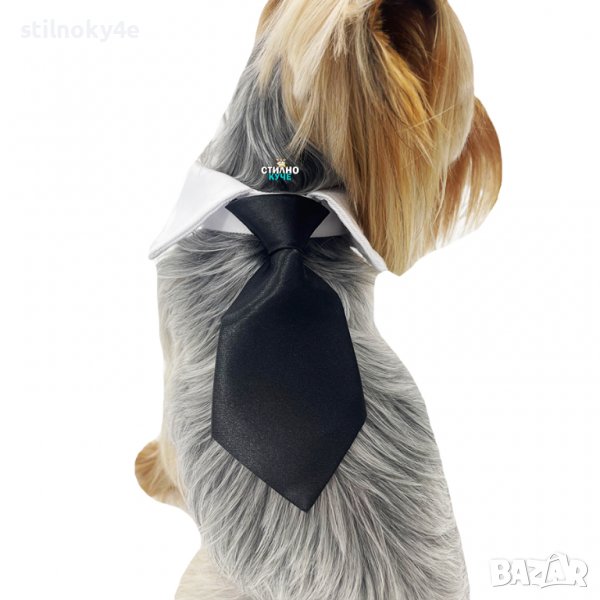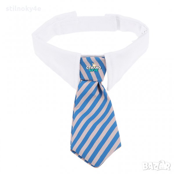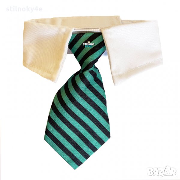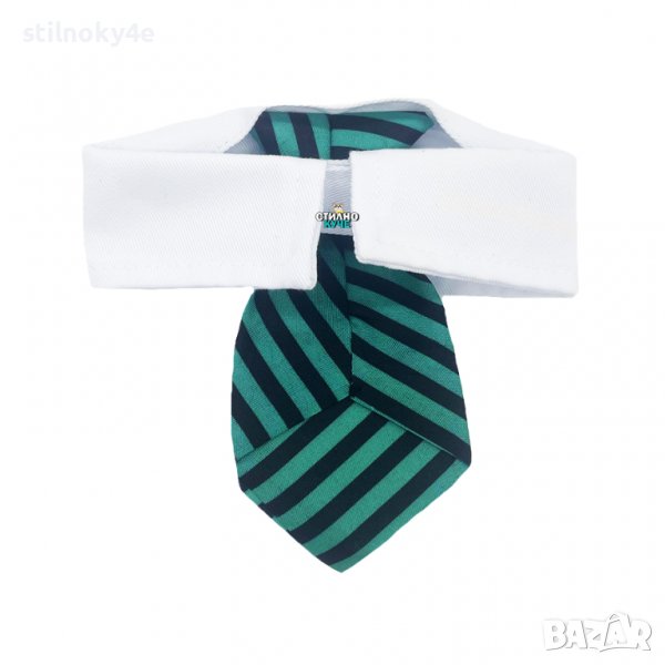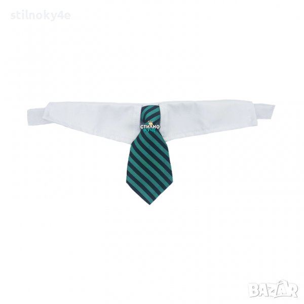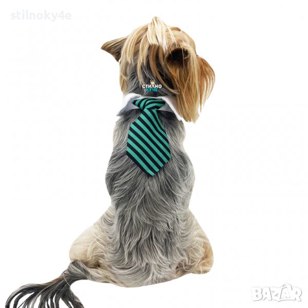 Вратовръзка за куче на райе и бяла яка.