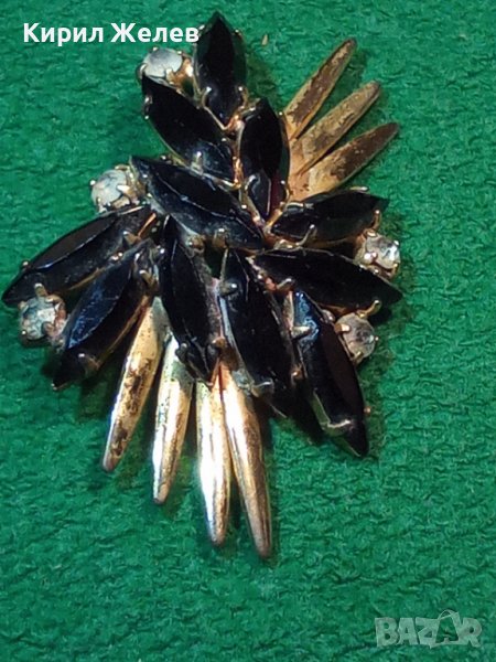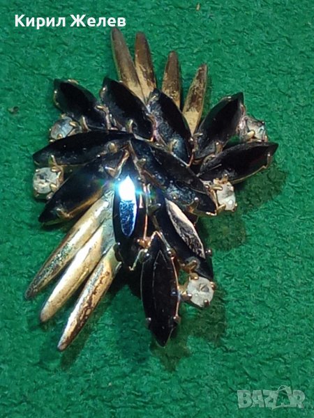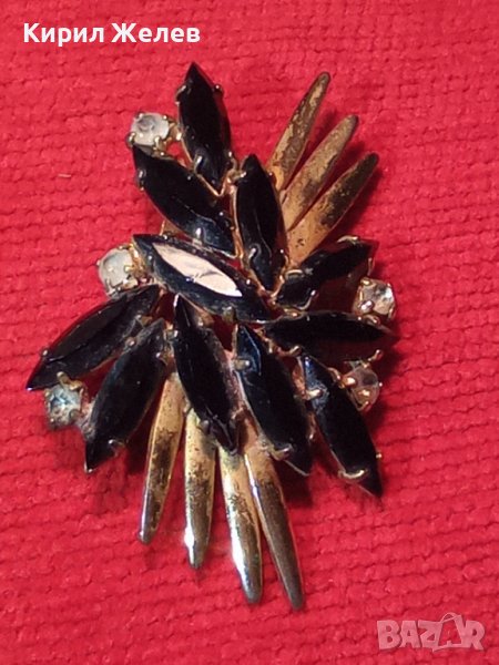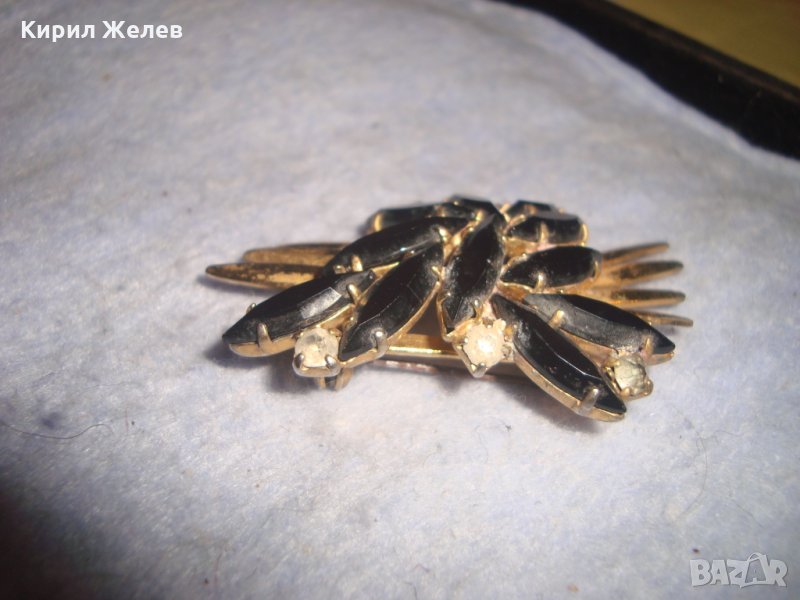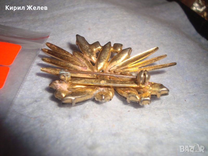 СТАРА ПОЗЛАТЕНА ВИНТИДЖ БРОНЗОВА АРТ НУВО СТИЛ РЕТРО БРОШКА с КРИСТАЛИ 71717