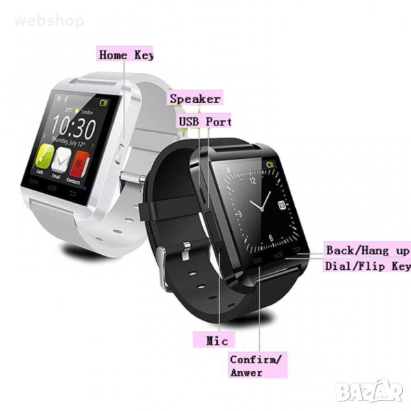 Малко и компактно устройство, свързващо се с Вашите телефон или таблет посредством bluetooth връзка, отлично прилягащо на китката Ви и даващо Ви множество функции! Часовникът показва името и номера на човека, който Ви търси и поддържа handsfree функция, която позволява да провеждате мобилните си разговори, директно чрез него, без да се налага да изваждате телефона си от чантата или джоба си! Разполага със стилен 1,48-инчов капацитивен сензорен екран TFT LCD, който показва времето, датата и седмицата. Чрез него може контролирате камерата на телефона си и да снимате от дистанция, може да слушате музика (посредством Bluetooth връзка), можете да синхронизирате телефонния си указател или да четете съобщенията си (SMS, Wechat, Facebook, Twitter, WhatsApp, Viber, Skype и т.н)! Изключително полезен против кражба или загуба на телефона Ви, защото когато устройствата се отдалечат едно от друго, часовника реагира автоматично и по този начин Вие реагирате на ситуацията!