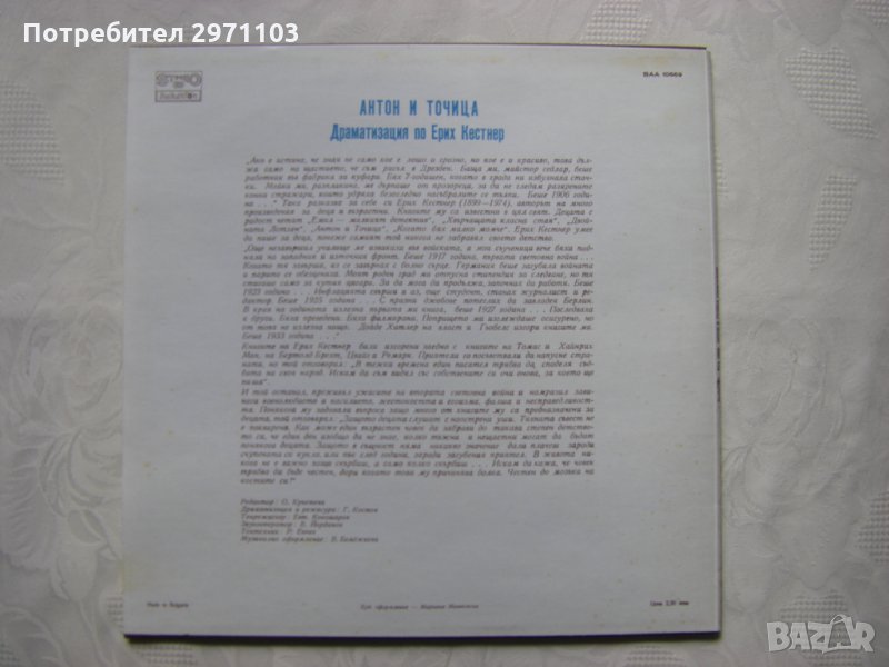 Грамофонна плоча - ВАА 10669 - Антон и Точица - драматизация по едноименната повест (Ерих Кестнер)