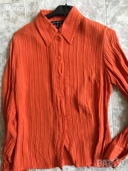 Продавам елегантна блуза Battibaleno. Еластична памучна материя има и коприна . Оранжев цвят . Никога нее носена защото не обичам този цвят .
