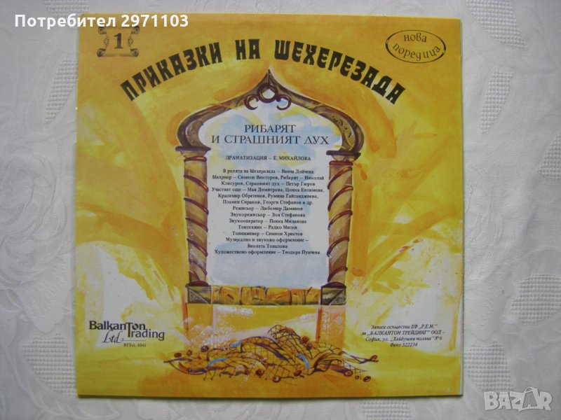 Грамофонна плоча - ВТТтL 1041 - Серия "Нова поредица". Приказки на Шехерезада 1 - Рибарят и страшният дух